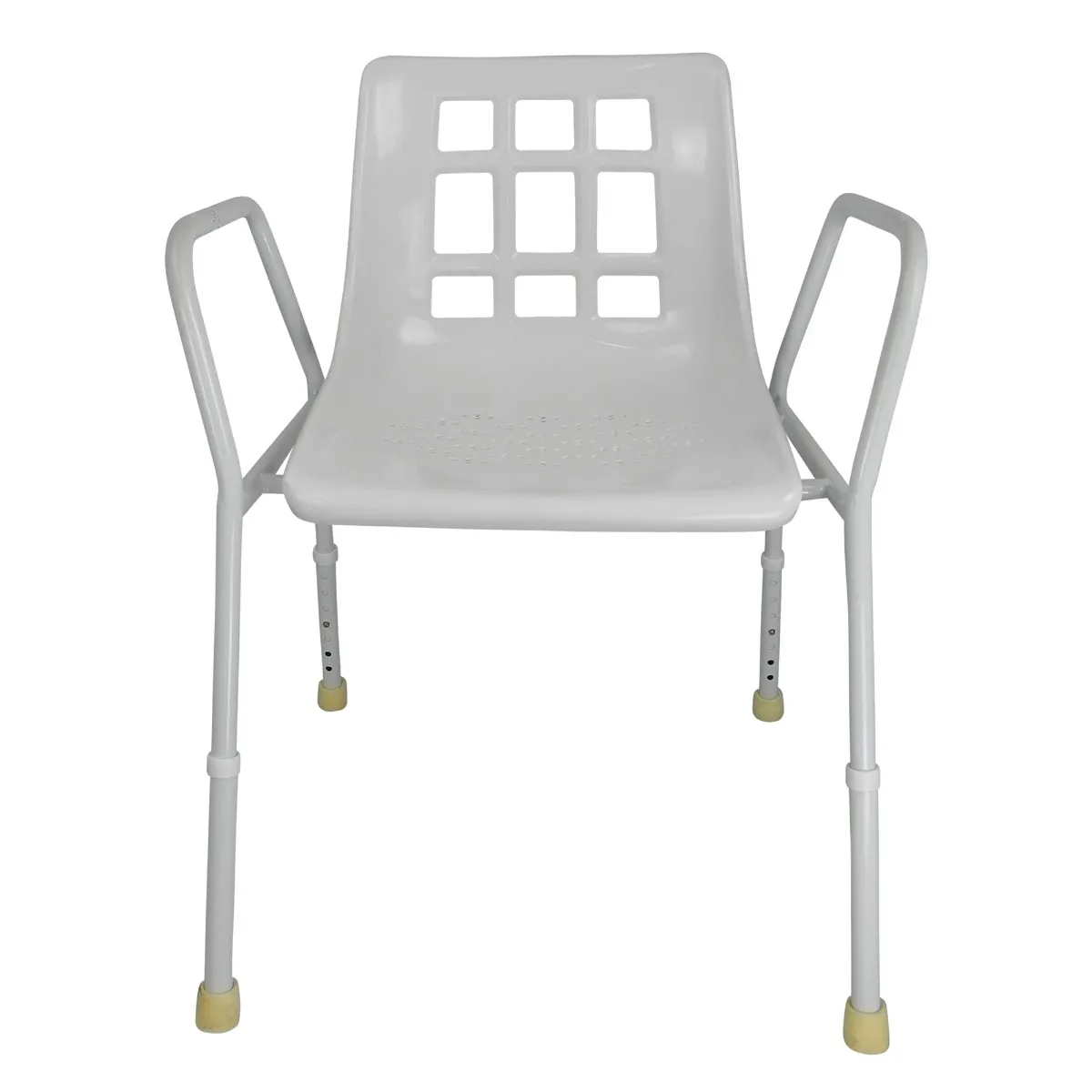 The Homecraft Steel Shower Chair enables comfortable & safe showering. Featuring a plastic contoured seat which adds further comfort, assists drainage and is height adjustable. Gently sloping plastic seat drains water easily. Made with a corrosion-resistant, zinc-treated and epoxy powder coated steel frame. Adjustable legs raise or lower the height. Rubber feet are made from non-slip rubber. Tested to Australian standards. Assembled and stacks vertically.