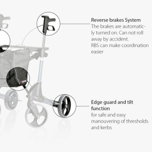- Reverse brakes keep the rollator still until you’re ready to walk